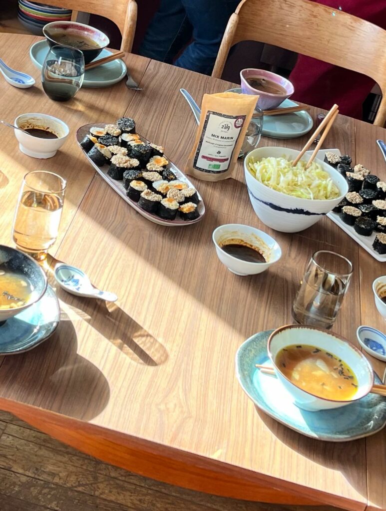 Dans la joie et la bonne humeur on a préparé 5 mets différents, inspirés d’une certaine idée de la cuisine japonaise mais avec des produits d’ici !